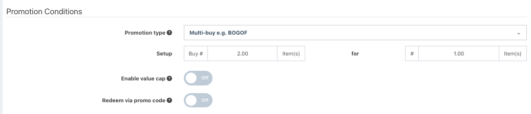 For a BOGOF style promotion, specify how many items a customer needs to buy and how many they will get free e.g. Buy 2 get 1 free.
