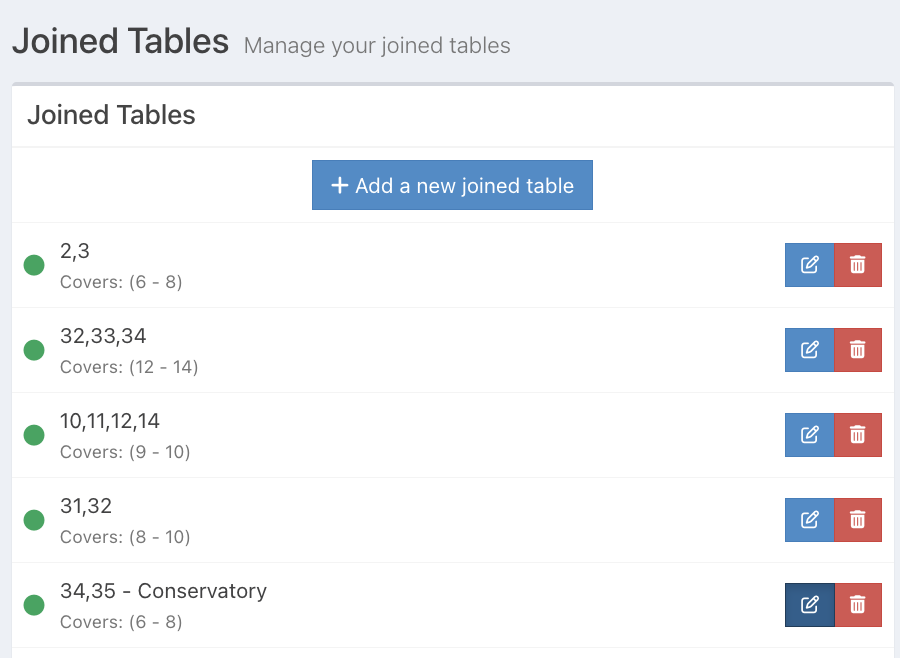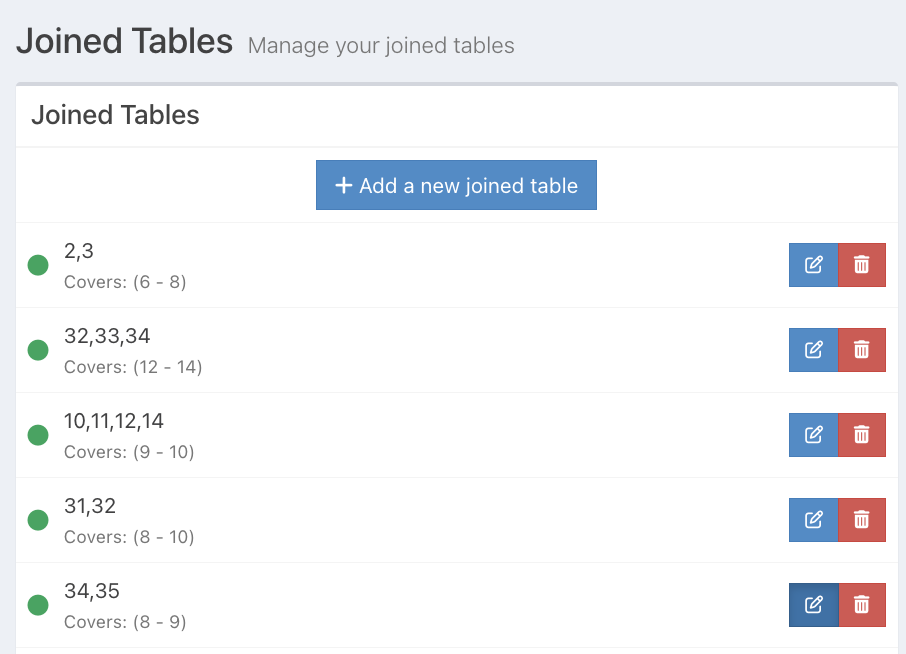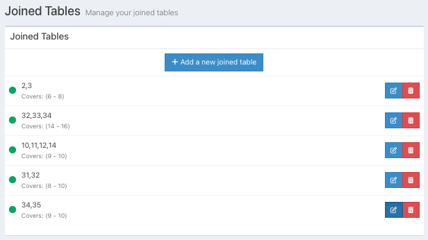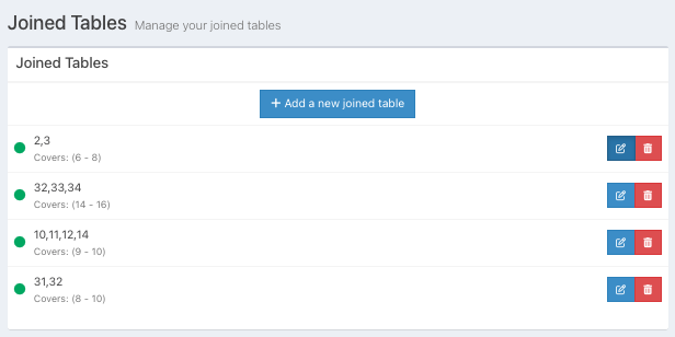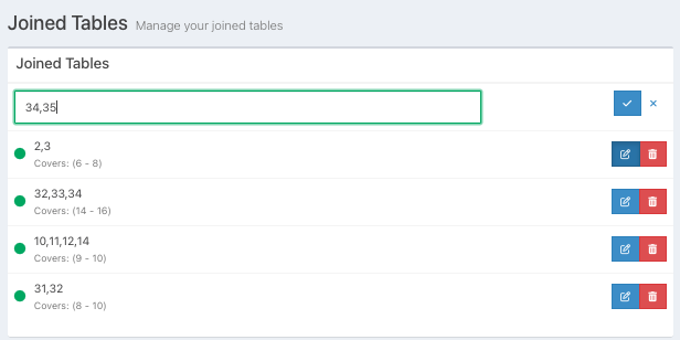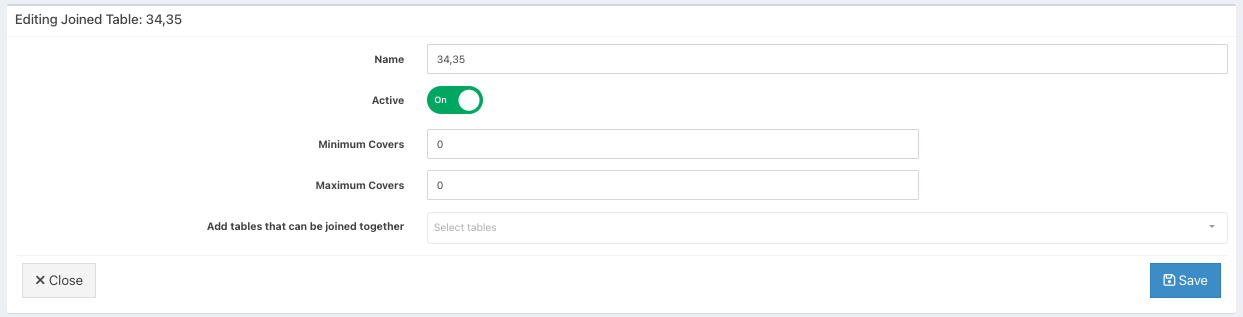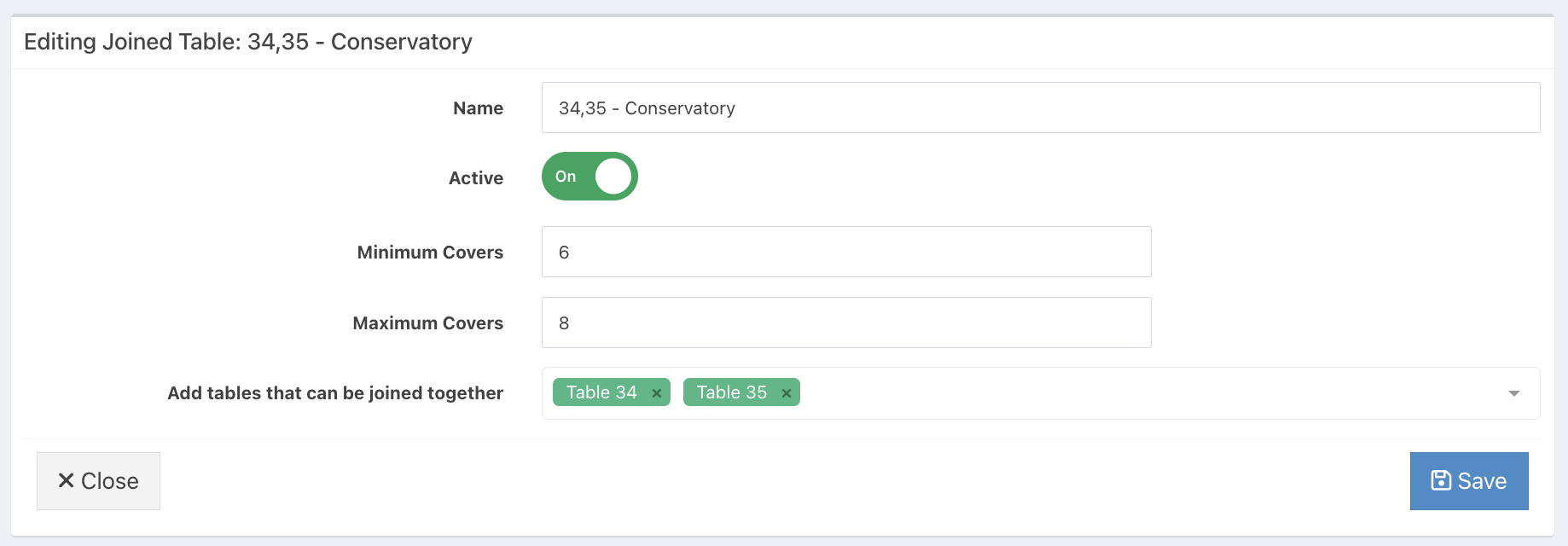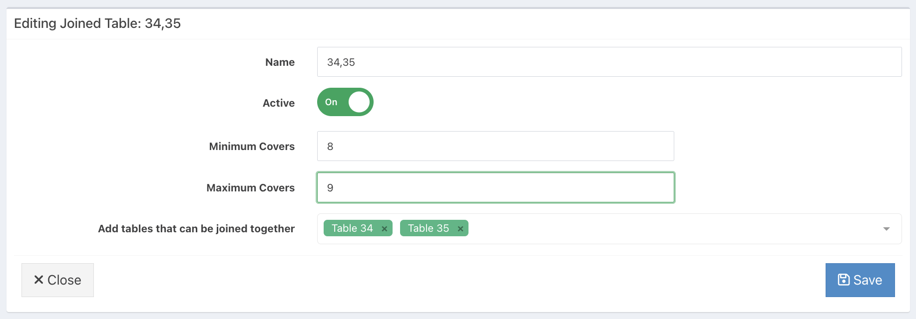 - Set a maximum number of covers (This cannot exceed the total maximum number of covers on the tables being joined)